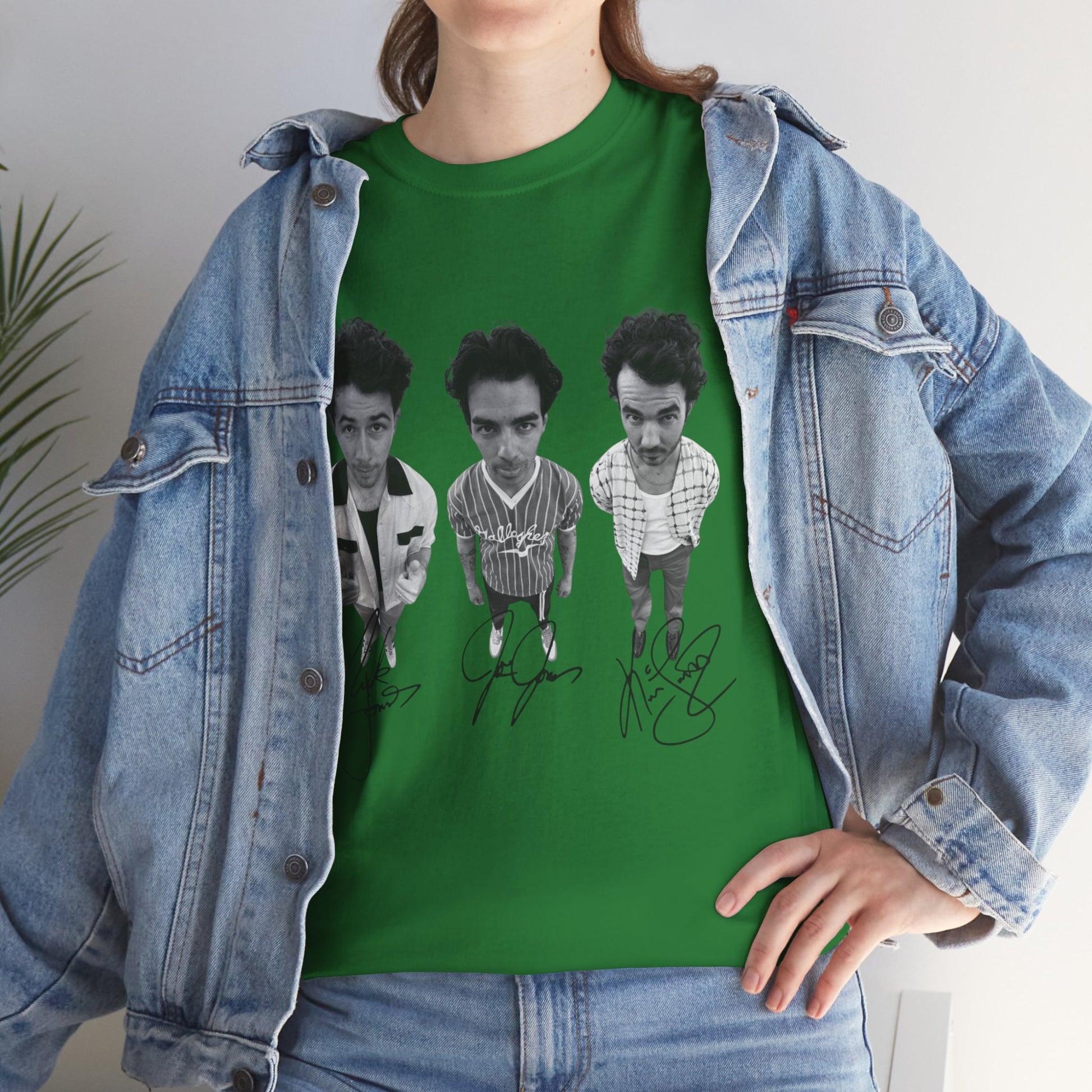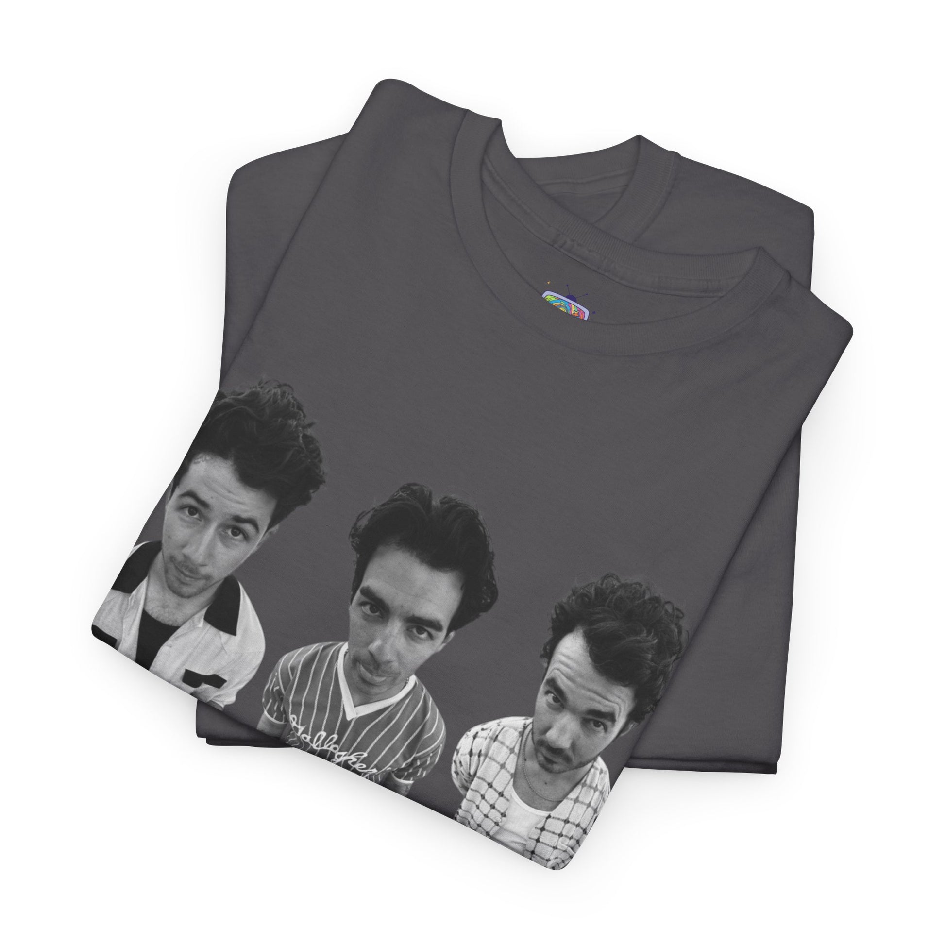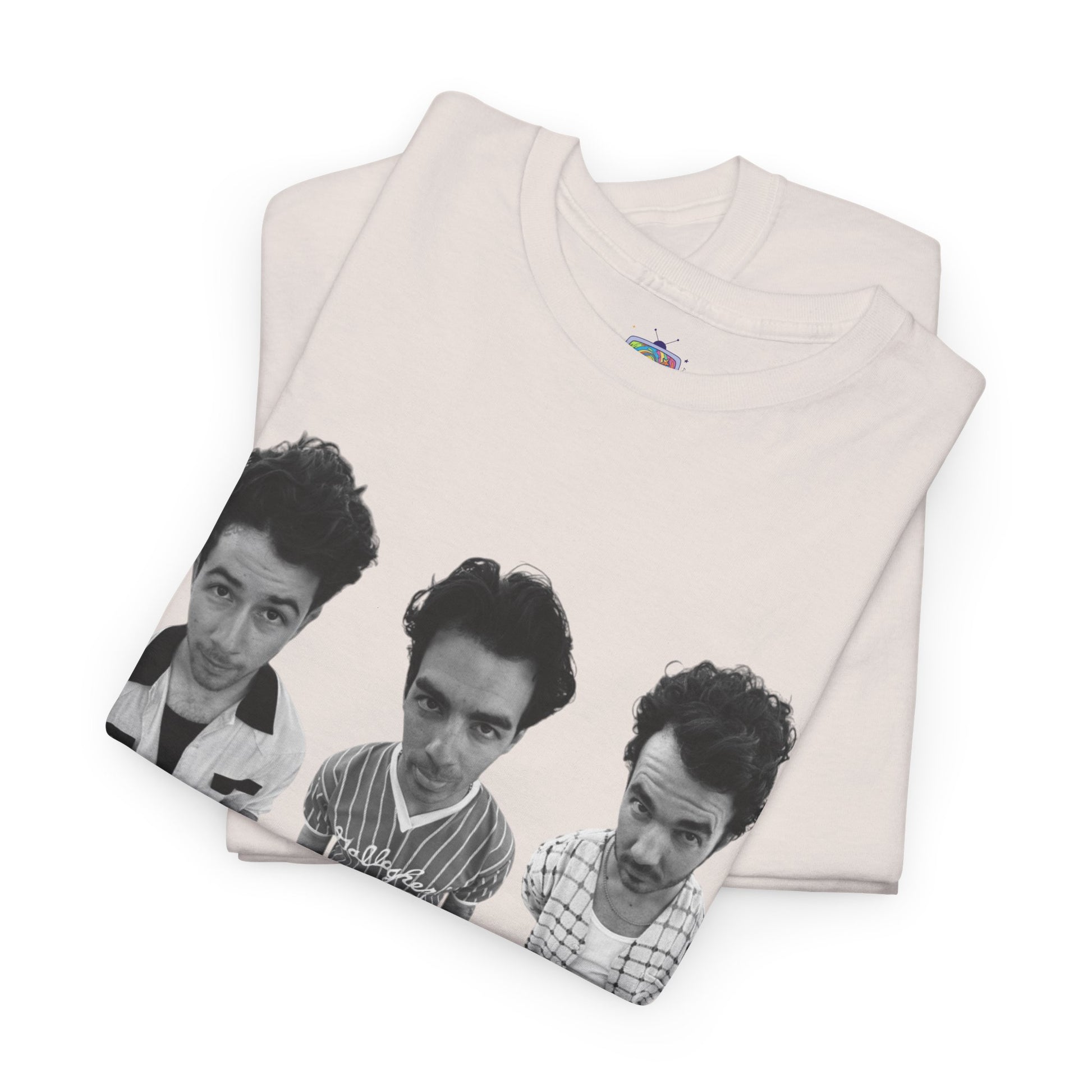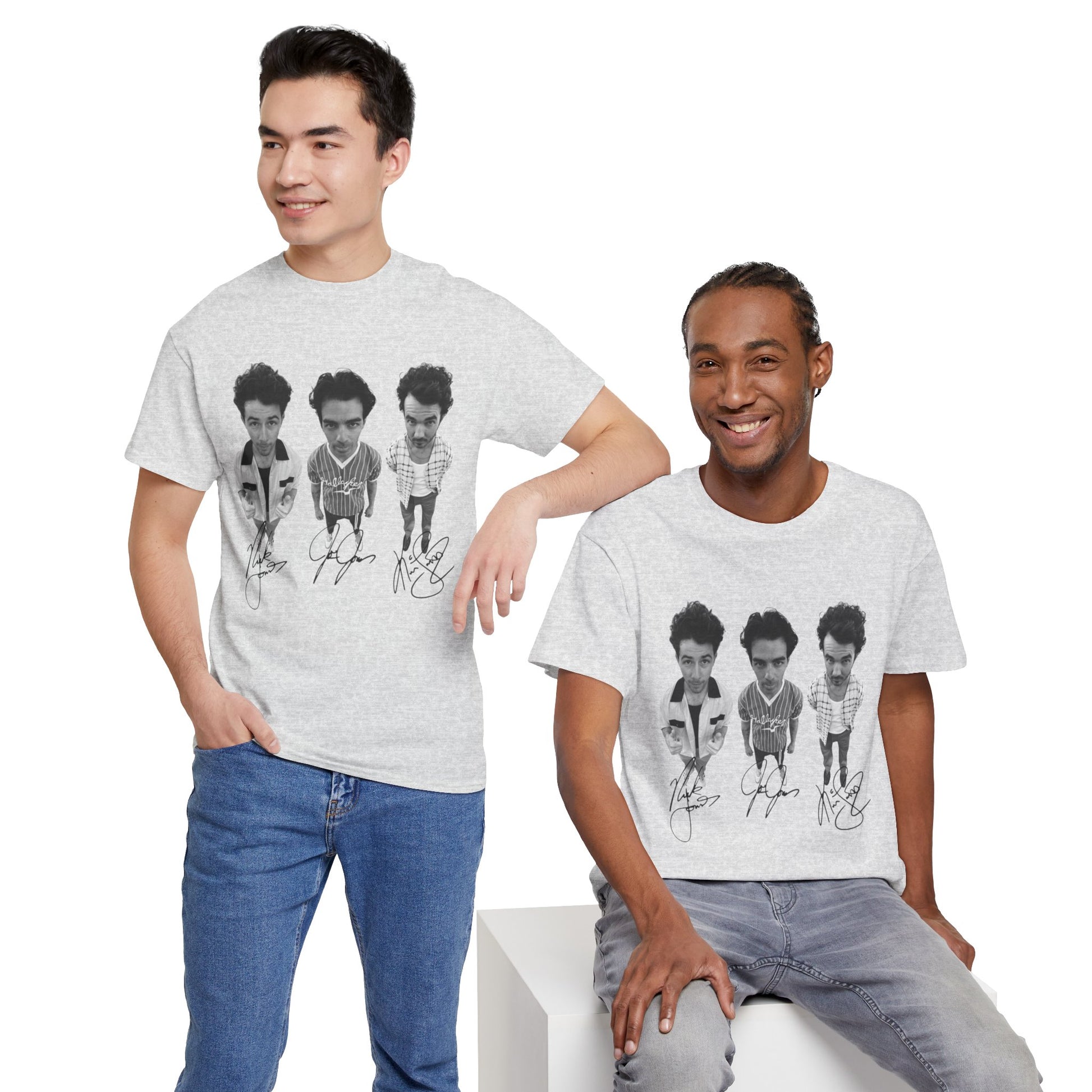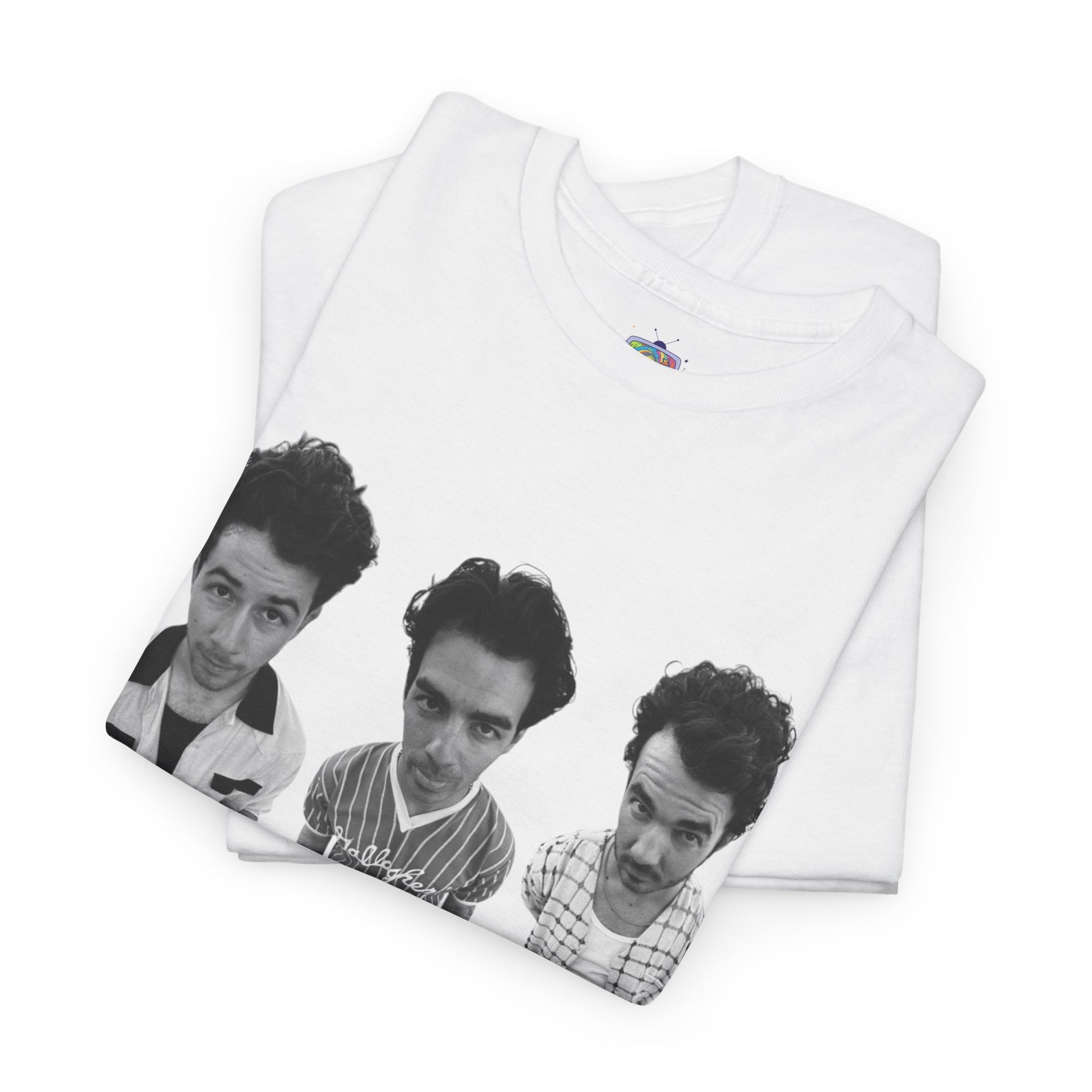 This white classic-fit tee carries a raw, intimate energy — three sketched portraits lean forward like bandmates caught mid-conversation. The minimalist black-and-white design reads like a snapshot: grainy, honest, slightly askew. It sits low on the chest so the image feels personal, not loud. Wear it to small shows, late-night hangs, or when you want your outfit to say you appreciate the overlooked and the authentic. The soft, structured cotton holds its shape after washes, while the tear-away label keeps the neck itch-free. It pairs naturally with worn denim, layered flannels, and that soundtrack you keep on repeat.